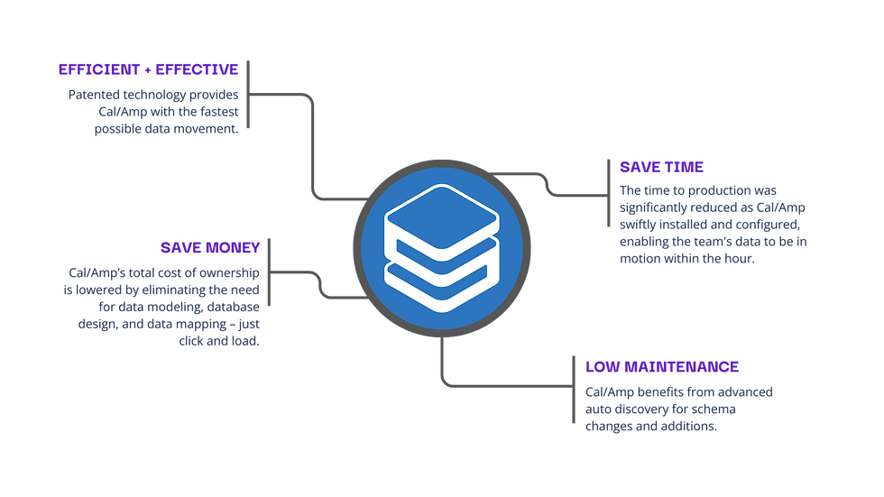 Sesame Software enabled Cal/Amp to link all of their data integrations to one trusted source. Sesame Software creates and continuously synchronizes an instant data warehouse that perfectly mirrors Cal/Amp’s Cloud applications, as well as database-to-database incremental copy.